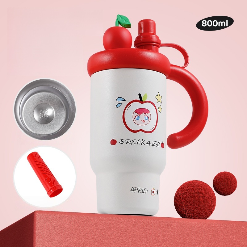 This kids' straw cup features a cute apple design with a cartoon character inside an apple, a red handle, and a playful apple-topped lid. Multiple styles with different fruit themes and cartoon patterns are available, so you can select the one that your little one will love the most.